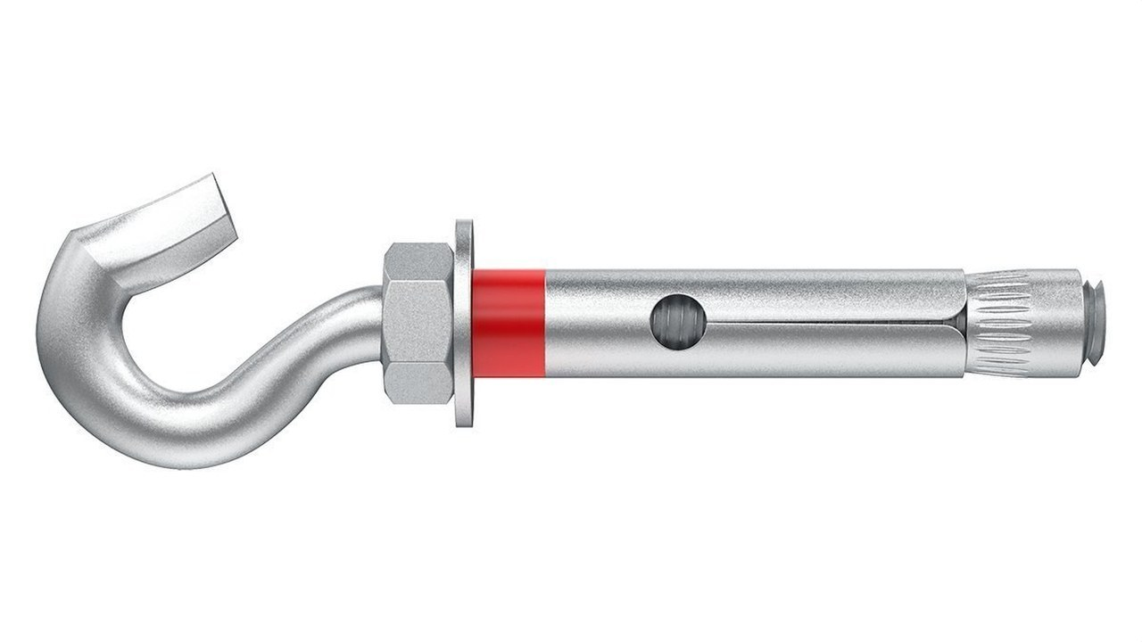 Anclaje metálico de expansión mediante rosca para cargas ligeras Acero cincado electrolítico de 5 micras de espesor Cáncamo abierto de acero especial estampado en frío -60 kg/mm2- Con arandela DIN 9021 Para fijación en hormigón y materiales macizos Aplicaciones Antenas- vallas y cualquier elemento para anclaje sobre cáncamo abierto en los gremios de la Carpintería- Electricidad- Fontanería- Cerrajería- etc…