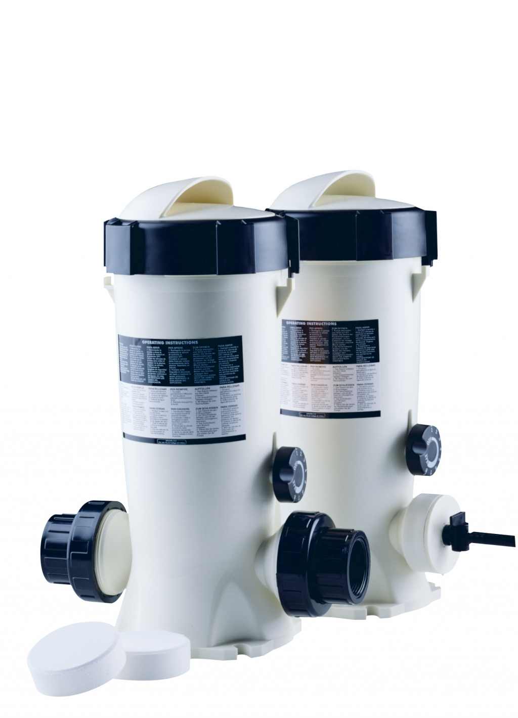 Dosificador de cloro y bromo. Fabricado de materiales inalterables plásticos (ABS). Capacidad aproximada: 3,5 kg de tabletas. Cierre con doble sistema de seguridad en la tapa. Válvulas de regulación de sencilla utilización. Para piscinas de hasta 60 m3 con cloro y para piscinas de hasta 30 m3 con bromo. Altura: 405 mm.
