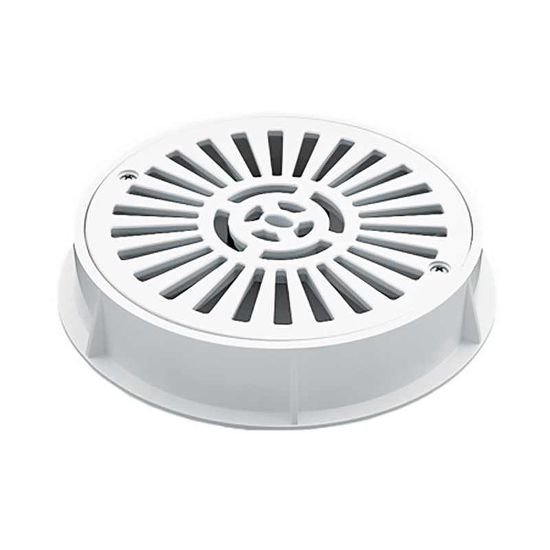 Reja de drenaje Ø 200 mm en ABS. Aro y rejilla en ABS color blanco, con tornillos de fijación reja.