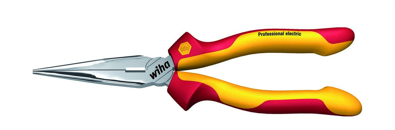 Alicates con boca semiredonda Z05020006 de 200mm Professional electric, con agarre, retención y corte de alambres y cables blandos y duros, fundamentalmente en el sector de electricidad. Es adecuado para el trabajo en el sector de las piezas conductoras de tensión de hasta 1.000 V CA, con larga vida útil gracias a la superficie cromada de alta calidad de los alicates que protege contra la acción del óxido. Cabezal de los alicates extra largo para la introducción de componentes situados a mayor profundidad.