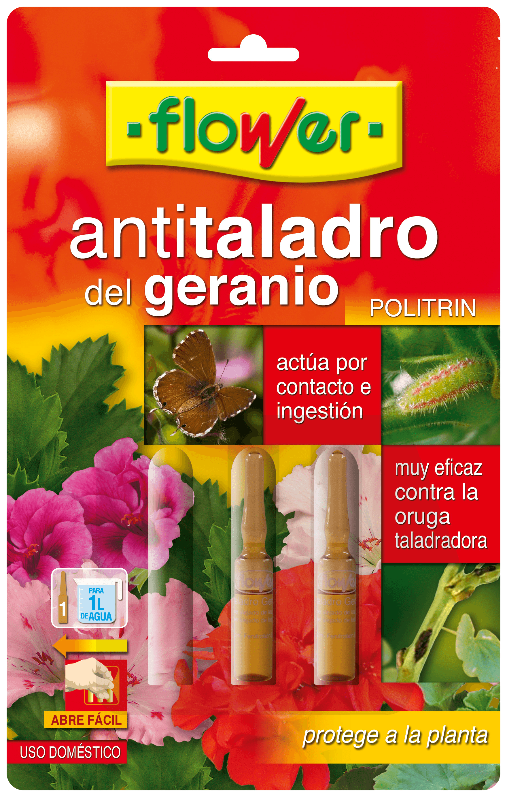 El Antitaladro Geranio Monodosis es un insecticida que combate de manera muy efectiva el barrenador (oruga) de los geranios, una plaga muy común en esta planta que devora el interior de los tallos y las hojas. Su uso puede ser tanto preventivo como curativo.