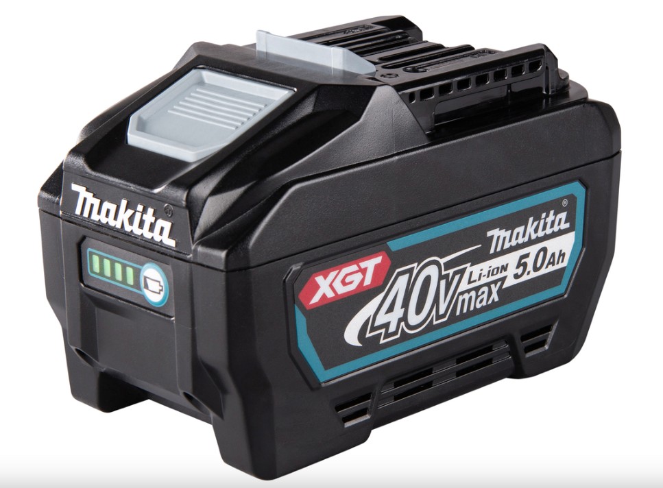Batería de alto rendimiento 40 V max de la plataforma XGT, con capacidad de 5,0 Ah, indicador de carga LED y diseño reforzado para uso profesional.