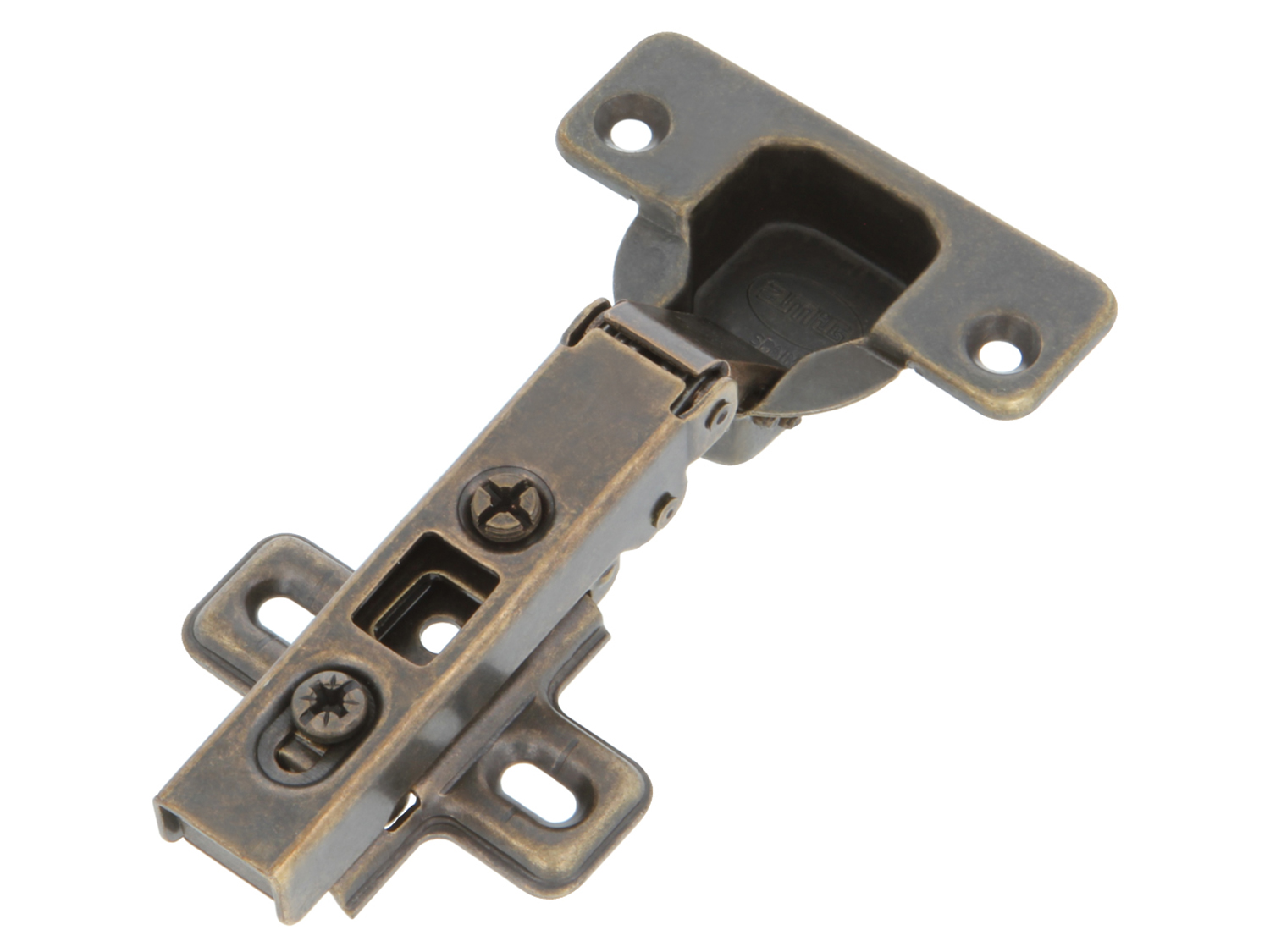 Bisagra de cazoleta recta en acero con pestillo de apertura rápida. Distancia entre agujeros: 48 mm. Apertura: 110°.