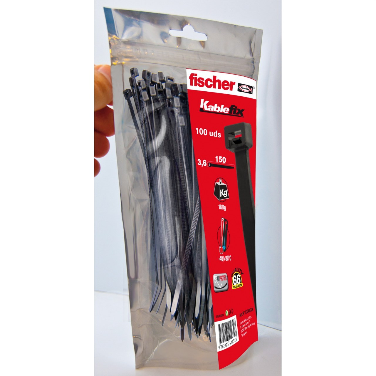 Bolsa 100 Bridas 2,5x160 Negro 69363 (520651) de la marca Fischer.
