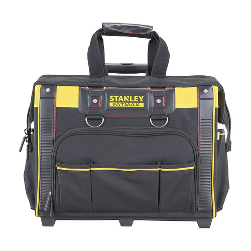 Bolsa rígida con ruedas Fatmax. Gran capacidad para guardar diferentes herramientas eléctricas, herramientas manuales y accesorios. Asa telescópica de gran resistencia. Ruedas para un fácil transporte. Múltiples compartimentos en el interior y exterior para obtener la máxima organización de las herramientas. Tapa superior con una gran obertura y fácil acceso. Tejido 600 Deniers para resistir desgaste y rasguños. Bolsillos con cierre para objetos personales.