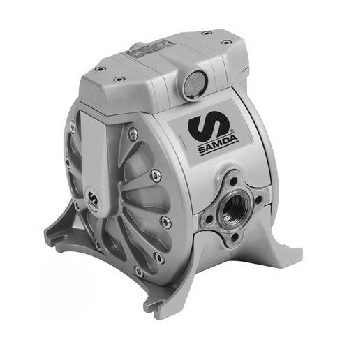 Bomba de membrana Samoa DF-100, versión básica con certificación ATEX, ideal para el trasvase de líquidos inflamables o en entornos con riesgo de explosión. Ofrece alto caudal, funcionamiento neumático seguro y diseño robusto para uso industrial intensivo.