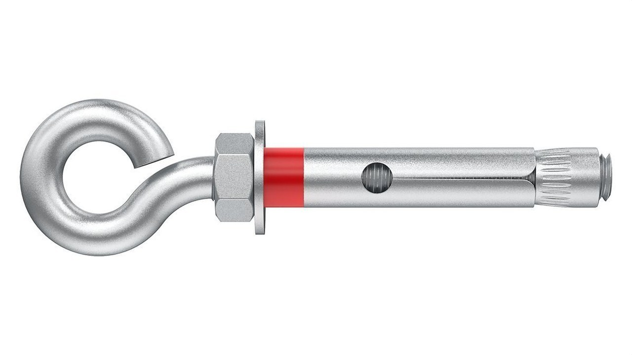 Anclaje metálico de expansión mediante rosca para cargas ligeras Acero cincado electrolítico de 5 micras de espesor Argolla cerrada de acero especial -60 kg/mm2- Para fijación en hormigón y materiales macizos Aplicaciones Antenas- vallas y cualquier elemento para anclaje sobre argolla cerrada en los gremios de la Carpintería- Electricidad- Fontanería- Cerrajería- etc…