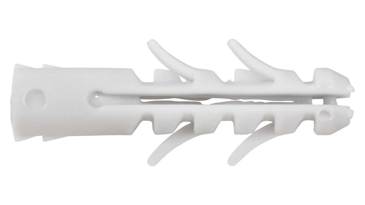 Taco plástico universal de expansión por roscado Muy adecuado para materiales macizos Con aletas antigiro que evitan la rotación dentro del taladro Cuello sin expansión: evita daños en alicatados o enlucidos Para uso con tornillos rosca madera Aplicaciones Sujeción de estanterias- persianas y carriles eléctricos- Para aplicaciones profesionales y bricolaje-