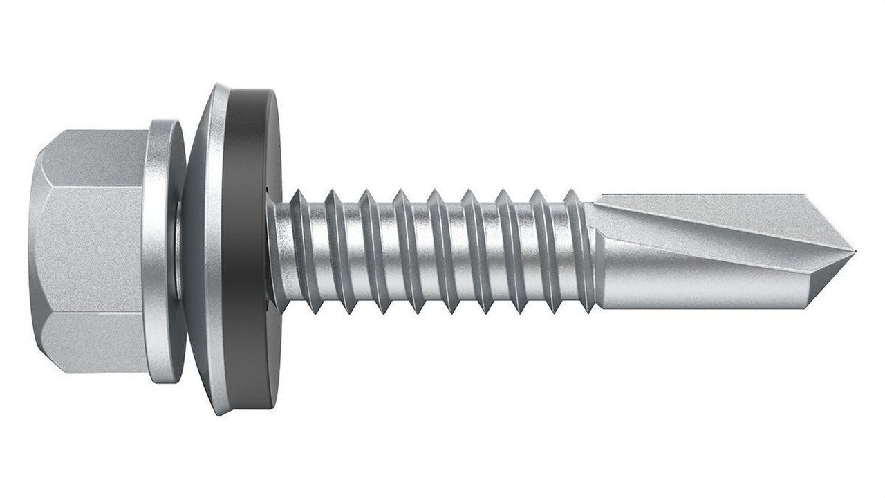 Tornillo autotaladrante y autoroscante de cabeza hexagonal y arandela de neopreno ISO 15480 Acero cincado Permite ensamblajes directos Aplicaciones Para unión de placas o perfiles de acero entre si- carrocería a chasis en vehículos- paneles de cierre en construcciones metálicas-