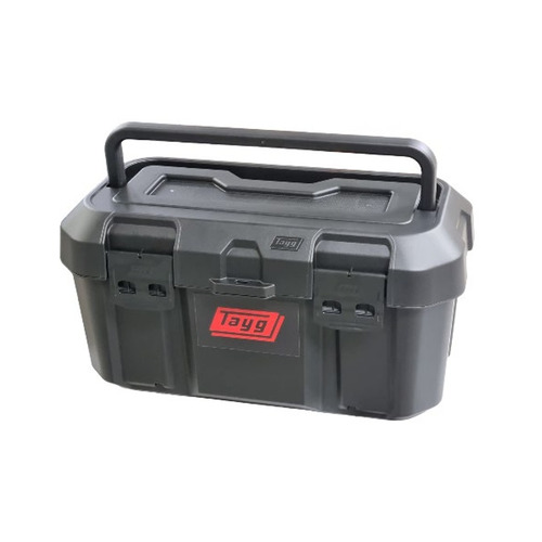 La Tayg 46 negra (Ref. 146077) es una caja de almacenamiento y transporte fabricada en plástico de alta resistencia, diseñada para uso profesional o doméstico. Su estructura robusta protege el contenido de golpes y suciedad, mientras su asa ergonómica facilita el transporte.