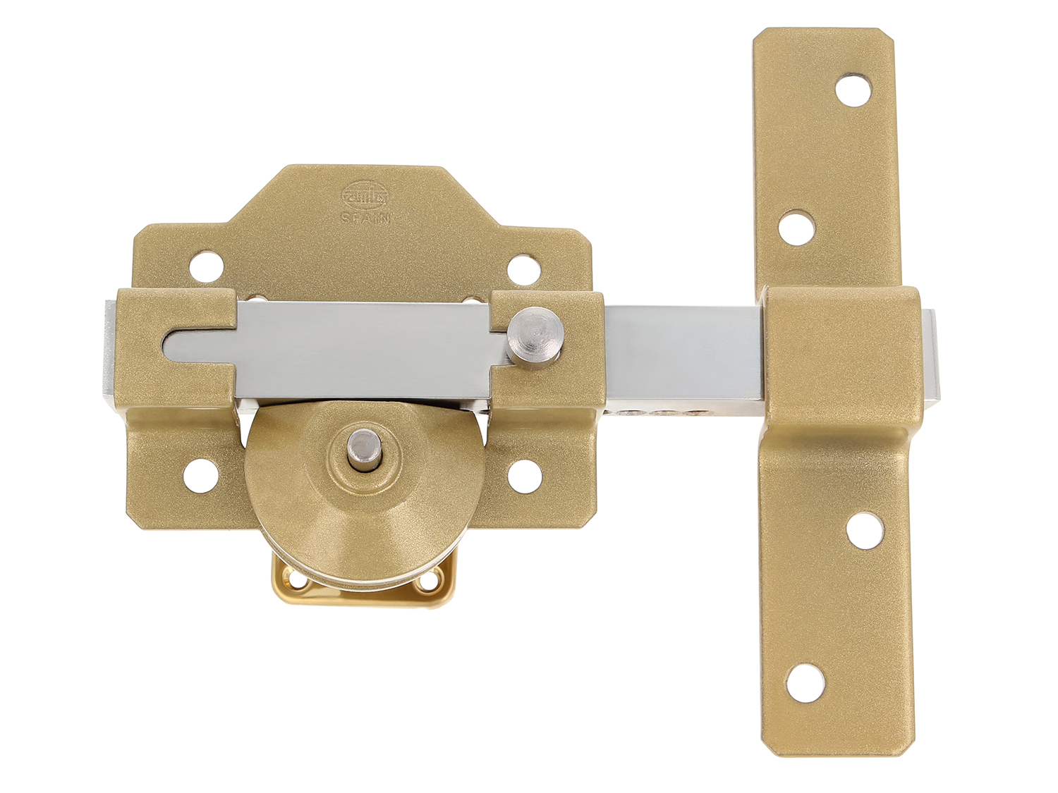 Cerrojo de sobreponer con cilindro redondo de seguridad y pestillo de apertura.Longitud del cilindro: 50 mm.Incluye 5 llaves de punto.Llave en bruto modelo 2500.