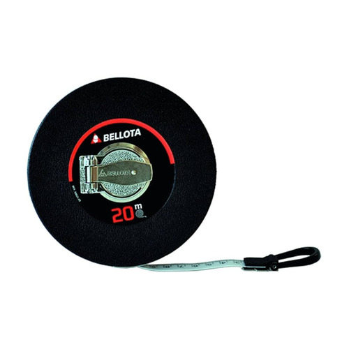 Cinta métrica de 20m marcada por ambos lados, con graduación milimétrica. La carcasa es de plástico, compacta y ergonómica para un mejor agarre y manejo. No necesita la ayuda de otra persona. Su gancho de acero se abate para fijar la cinta en diferentes superficies. Sus medidas son de 200x200x25 mm, con un peso de 660 g. La capacidad de absorción y resistencia que ofrece es muy alta.