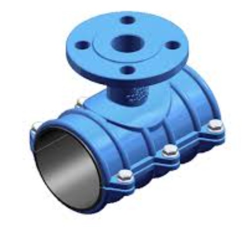 Collarín de fundición dúctil con salida brida 250/80 de URCAST, indicado para derivaciones en tuberías.