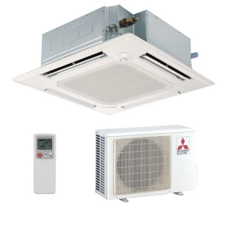 Conjunto cassette modelo MGPLZ-71VEA de MITSUBISHI, indicado para instalaciones de aire acondicionado tipo cassette empotrado en techo. Diseñado para proporcionar una distribución uniforme del aire en estancias, es adecuado para aplicaciones residenciales o comerciales. Permite su integración en sistemas de climatización para ofrecer refrigeración y calefacción según la instalación.