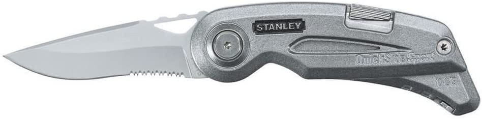 Cuchillo QUICKSLIDE SPORT 120mm (blíster). Cuerpo de aluminio fundido con hoja de acero inoxidable de 75mm serrada y cuchilla multiusos. Mecanismo de bloqueo Interlock. mientras una hoja está abierta, la otra se bloquea para mayor seguridad. Viene con funda y cuchillas para una mejor conservación. Deslizador hoja de zinc para una mayor durabilidad y resistencia. Control deslizante del pulgar, para un fácil manejo de la hoja de utilidad. Mecanismo de bloqueo que permite que sólo una cuchilla para extenderse en cualquier momento, para la seguridad. Columna Cerradura positiva hoja fija cuando se abre, para una operación segura. No se necesitan herramientas para cambiar la hoja de utilidad, rápido y fácil de reemplazar las hojas. Hoja tradicional separada utilidad ideal para profesionales de corte de servicio pesado75 mm hoja de sierra para el jardín, afición, y el uso al aire libre.