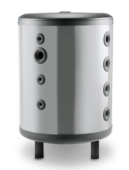 Depósito de inercia Domusa BT Inox 150, fabricado en acero inoxidable, diseñado para almacenar energía térmica y optimizar el funcionamiento de sistemas de calefacción y ACS. Aumenta la eficiencia energética y reduce el consumo del generador.