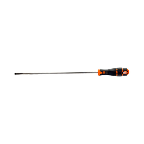Destornillador de punta recta ranurada Bahcofit con agarre de goma, 0,8mmx4mmx250mm, para tornillos de cabeza plana y con varilla de electricista. Punta fosfatada para proporcionar la máxima precisión. Mango bi-componente con ranuras verticales y zona de la empuñadura suave y amplia para un agarre cómodo y una elevada transmisión del par de apriete. Mango fabricado con más de un 75% de goma. Símbolo permanente y marcas en el mango para identificar rápidamente la punta.