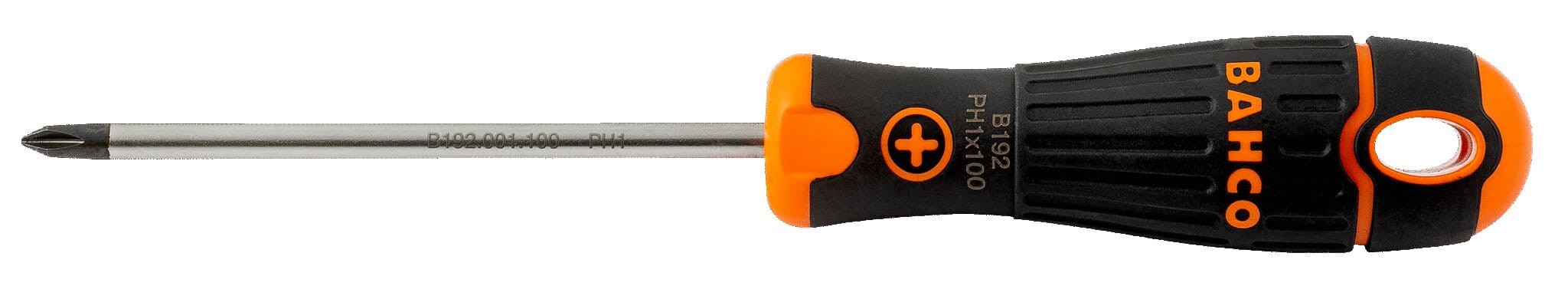 Destornillador Phillips Bahcofit con agarre de goma, PH0x75mm, para tornillos Phillips. Herramientas duraderas gracias a la punta fosfatada para garantizar la máxima precisión y la varilla cromada para una mayor protección contra la corrosión. Suave empuñadura para un agarre cómodo y una elevada transmisión del par de apriete. Mango bi-componente con ranuras verticales para un agarre cómodo y la máxima transmisión de fuerza, con superficie antideslizante. Mango fabricado con más de un 75% de goma.
