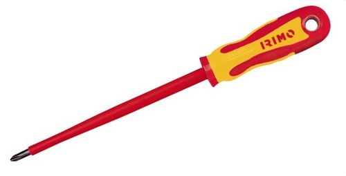 Destornillador aislante Phillips PH-1 de 150mm, para trabajos de baja tensión de hasta 1000V. El mango es bi-componente con agujero para colgar, y la varilla es de aleación de acero de alto rendimiento con recubrimiento. El tamaño y código está marcado por láser en varilla.