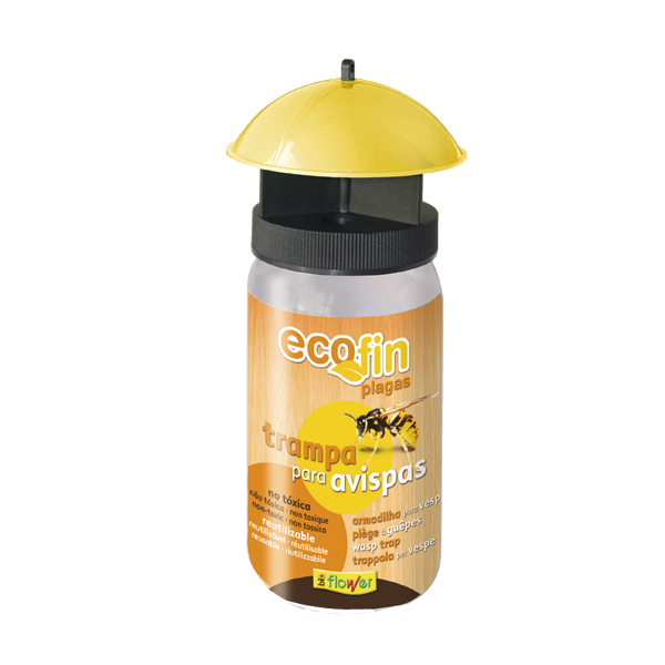 Trampa para avispas, diseñada para la captura de estos molestos insectos. La avispa entra en la trampa y se queda atrapada sin poder salir.