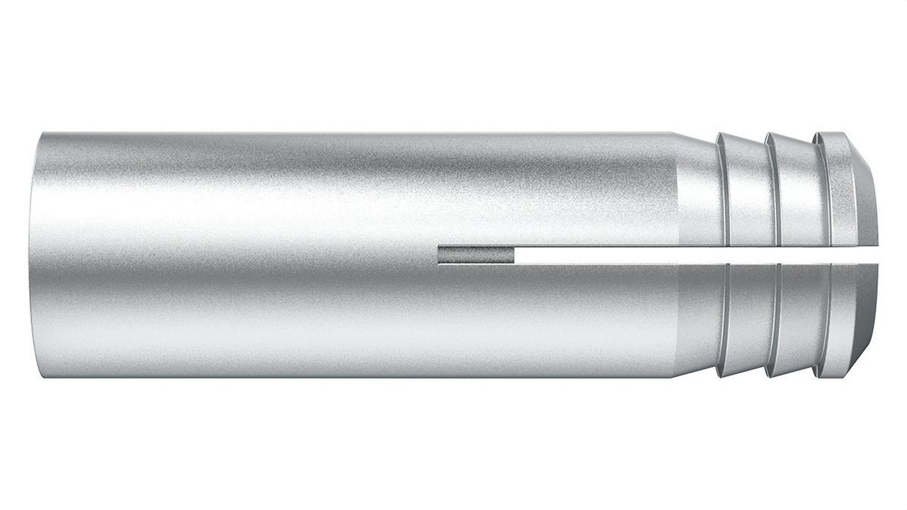 Anclaje metálico de expansión homologado con rosca interna para cargas medias Acero cincado electrolítico de 5 micras de espesor Expansión por impacto Para fijación en hormigón y materiales duros Uso con tornillos o varillas metálicas