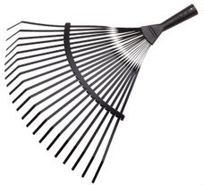 Escoba de púas planas para limpieza de césped, hojas y residuos. Las púas planas son de acero de alta calidad con un tratamiento térmico que las hace resistentes a la flexión y también te ayudarán en la limpieza de césped cortado, hojas y residuos sin dañar el césped. Elige tu mango. Están barnizados, son ligeros y de tacto muy agradable. Sus medidas son de 420x385x30 mm, con un peso de 440 g. Nunca fue tan fácil limpiar el césped, recoger hojas u otros residuos.