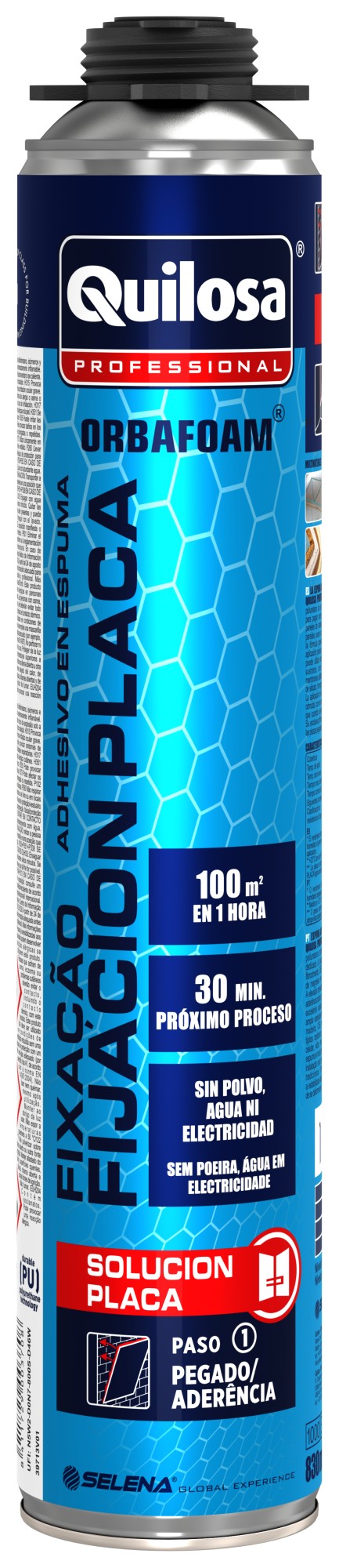 Adhesivo en espuma de PU profesional diseñado para cartón yeso y para la mayoría de los tipos de tableros, como OSB y productos de poliestireno extrudido, además de para otras aplicaciones con tabiquería seca. Se puede aplicar sobre la mayoría de los sustratos de construcción, como hormigón normal y celular, yeso de seda, madera y ladrillo.  Permite fijar tableros con rapidez y eficacia utilizando un método limpio y sencillo. Permite corregir irregularidades de hasta 2 cm en las paredes. Listo para su uso, sin polvo y de peso ligero.  No se necesita electricidad ni agua. No es necesario realizar ninguna mezcla en el lugar de trabajo. Instalación sencilla: preparar, aplicar, ajustar y listo para el uso. Beneficios Tecnología limpia; formato listo para su uso, sin necesidad de mezclarlo con agua. Alternativa a los adhesivos en polvo, con un rendimiento incluso mejor. Tecnología rápida y eficaz, con curado completo a los 30 minutos que permite enlucir la superficie a las 2 horas.   Usos Adhesivo en espuma diseñado para tabiquería seca: cartón yeso, tabiques de madera, paredes de cemento.