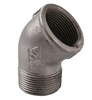 El codo F121 de 45° M/H 2½" galvanizado permite desviar tuberías con una unión resistente y protegida frente a la corrosión.