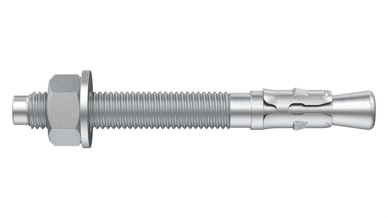 Anclaje metálico de expansión con rosca externa para cargas medias y altas Acero cincado electrolítico de 5 micras de espesor Con rosca larga Arandela DIN 125 y tuerca DIN 934 premontada Aplicaciones Para aplicaciones en hormigón y materiales duros- Fijación de placas- maquinaria y puentes grua- Barandillas de alta resistencia- soportes y señalizaciones-