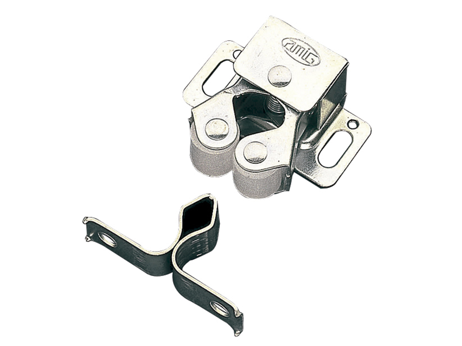 Golpete de acero tipo lira con rodillos de goma para muebles.