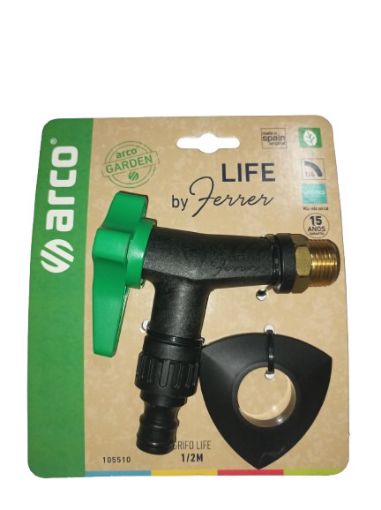 El Grifo Curvo Life Verde 1/2M (105510) es un grifo funcional y duradero, diseñado en un vibrante color verde. Ideal para exteriores, ofrece fácil instalación y resistencia al uso frecuente.