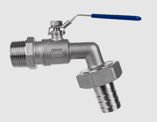 Grifo de jardín fabricado en acero inoxidable, resistente a la corrosión y al uso en exteriores. Con conexión de 3/4", ideal para sistemas de riego y uso doméstico.