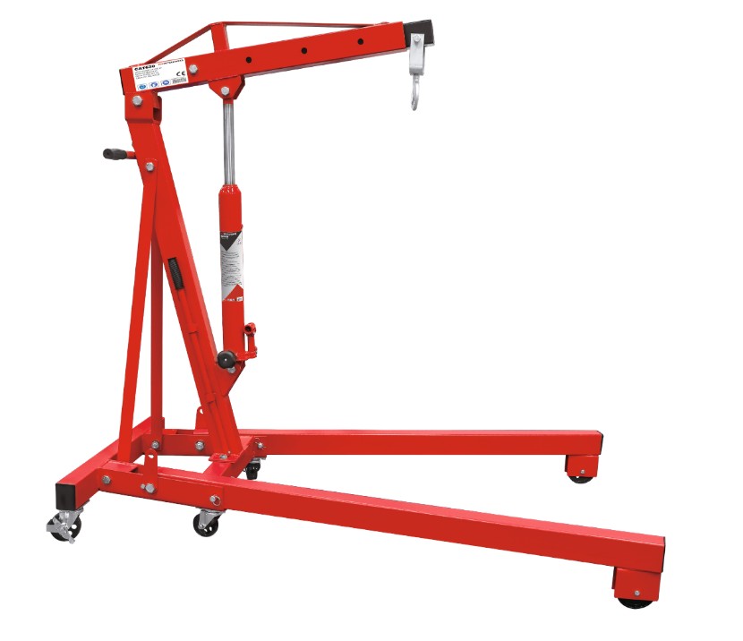 Grúa plegable modelo CAT620 referencia 754756201 de ASLAK con capacidad de carga de hasta 2 toneladas. Diseñada para la elevación y manipulación de cargas pesadas, especialmente en talleres o entornos industriales. Su estructura plegable facilita el almacenamiento y transporte, siendo adecuada para trabajos de mantenimiento, mecánica o manipulación de equipos.