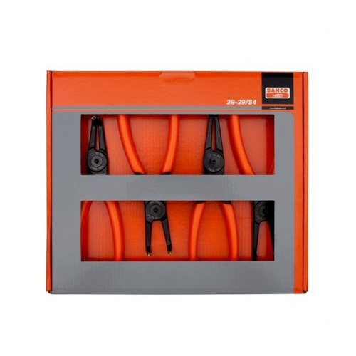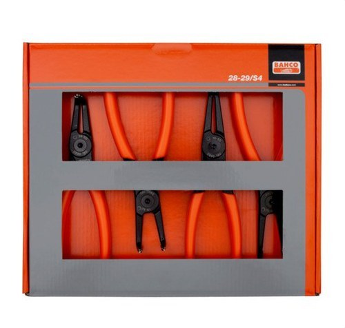 Juego de alicates 28-29/S4 19-60mm para arandelas interiores y exteriores, en caja de cartón.