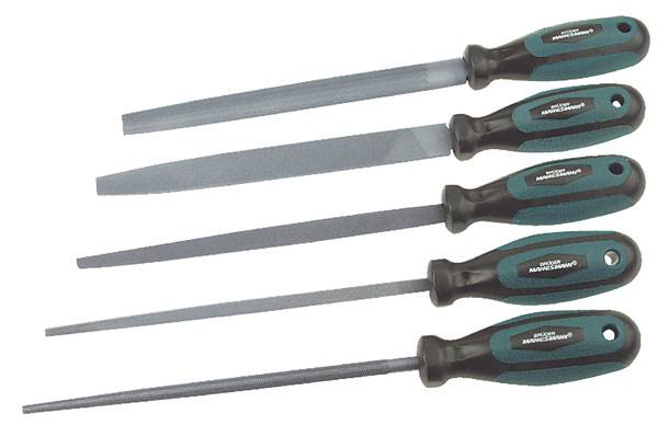 Ref.:M61006 Juego de 5 limas para taller fabricadas de acero carbono de alta calidad CARACTERÍSTICAS• Longitud: 200 mm• Picado 2, Mangos anti-resbalantes de grandes componentes con agujero de suspensión• Plana roma • Semiredondo • Redondo• Triangular • Cuadrado