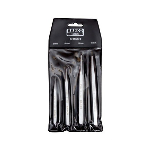 Juego de granetes con acabado cromado, que incluye 4 unidades. Superficie de acero pulido, con brillo final cromado. En estuche.