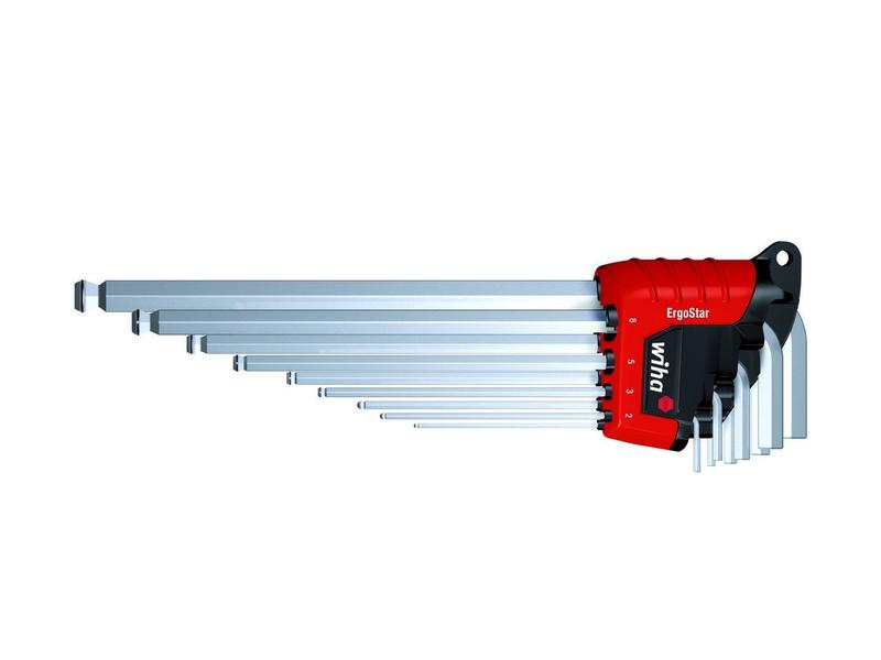 Juego de llaves Allen 369RH9 MagicRing con soporte ErgoStar (9u). En muchos soportes de llaves Allen resulta incómodo el hecho de tener que extraer las llaves individuales o de introducirlas de nuevo en el soporte. Pero esto se ha acabado gracias a Wiha ErgoStar, ya que ha logrado solucionar este problema de un modo genial. El giro de una llave Allen individual en el soporte hace que todas las demás llaves giren hacia un lado con el mismo ángulo, permitiendo una extracción rápida y cómoda. Una fijación dispuesta en el soporte asegura que las llaves no puedan caerse, ya sea con el soporte cerrado o abierto. Gracias al muelle de sujeción MagicRing® de acero inoxidable, las llaves Allen pueden sujetar perfectamente todos los tornillos normalizados hexagonales en cualquier posición, independientemente del material del tornillo. De este modo, la extracción de tornillos embutidos, así como la introducción y el atornillado en un ángulo de hasta 25° se convierten en un juego de niños. Adecuadas para extraer tornillos normalizados embutidos y para la introducción y el atornillado en agujeros ciegos horizontales, inclinados o profundos, con larga vida útil gracias a la superficie cromada de alta calidad de la llave Allen que protege contra la acción del óxido. Siempre la llave correcta en lugar correcto.