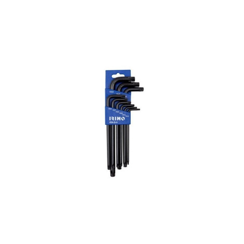 Juego de 9 llaves Acodadas pavonadas Torx® inviolables cuyo acabado es negro. Tienen el tamaño marcado en la llave para una fácil identificación. Embalaje en blister.