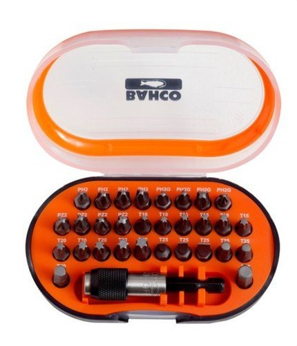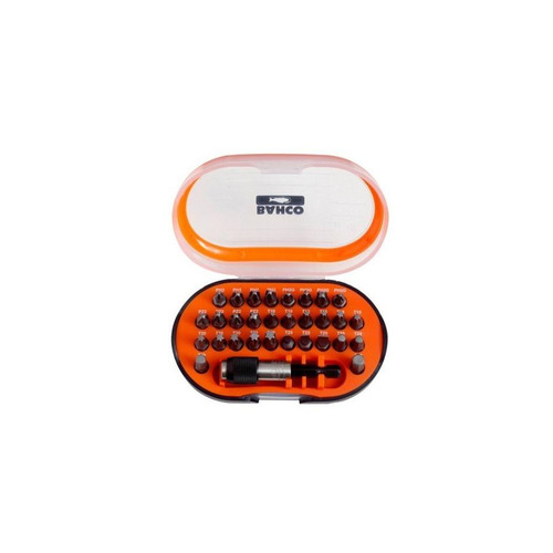 Juego de 31 puntas rectas, Phillips, Pozidriv TORX®, hexagonales y porta puntas magnético. En soporte colgable de cartón.