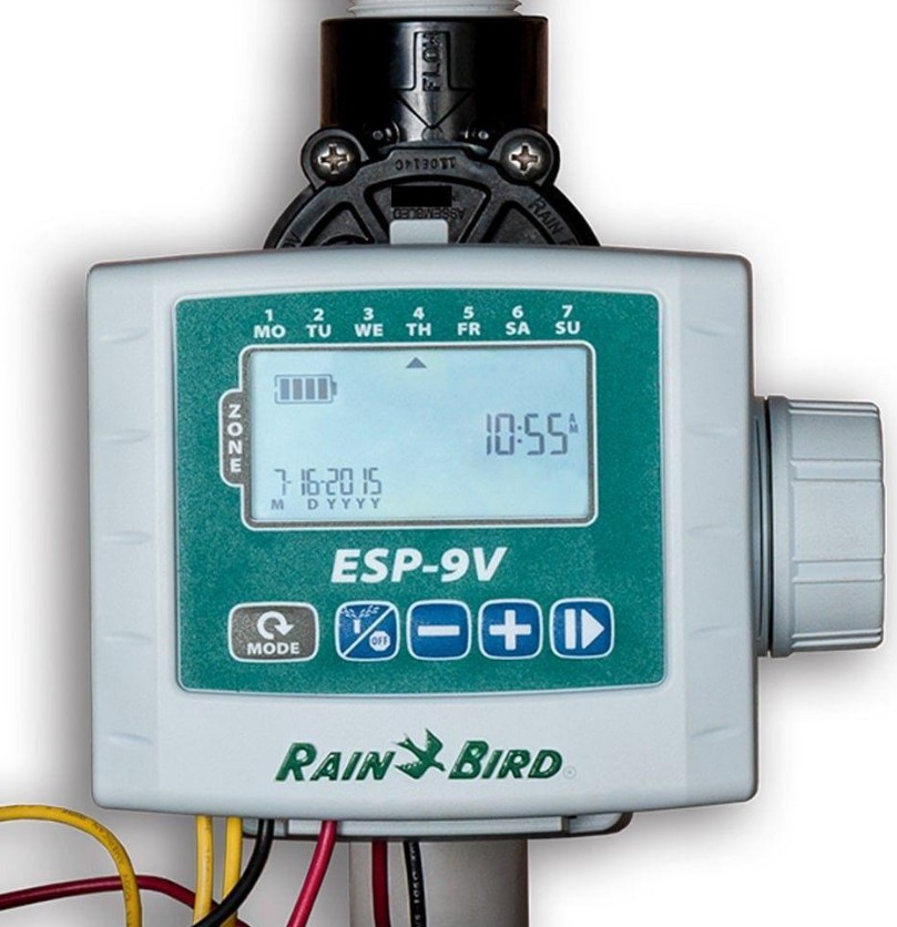 El kit programador 9V 1 estación con válvula 1" H 75514 de Rain Bird (Fluidra) está diseñado para automatizar el riego de forma práctica y autónoma.