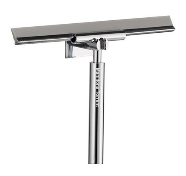 Rascador limpiador para mamparas de baño con acabado en cromo brillante. Su diseño compacto y ergonómico permite eliminar fácilmente el exceso de agua y evitar marcas de calcáreo o salpicaduras.