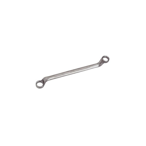 Llave de estrella Acodada con 2 bocas y 14x15mm, hecha de aleación de acero de alto rendimiento cromado, y acabado mate.