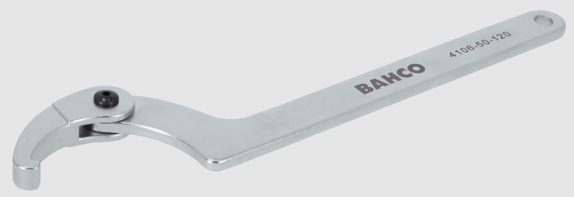 Llave gancho articulada de la serie 4106-32-75 de Bahco, diseñada para sujetar, mover o girar piezas de gran tamaño con facilidad gracias a su cabeza ajustable y mango de agarre firme. Fabricada en acero de alta resistencia para un uso profesional exigente.