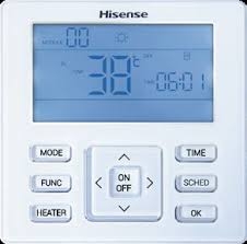 El Mando por Cable HSXE-FA01M de Hisense es un controlador remoto cableado diseñado para sistemas de aerotermia y enfriadoras de la marca, ofreciendo gestión directa y fiable de la climatización.