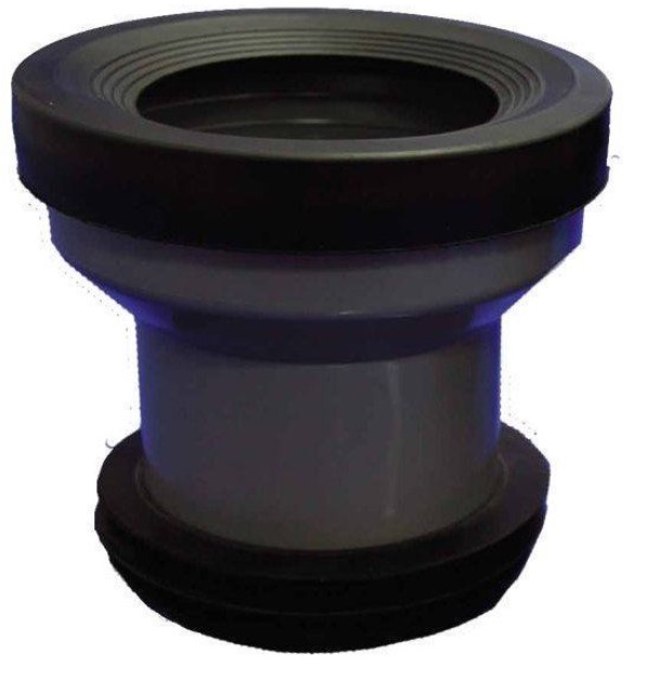 Manguito rígido fabricado en PVC de alta calidad, diseñado para la conexión segura y estanca entre el inodoro y la tubería de evacuación.