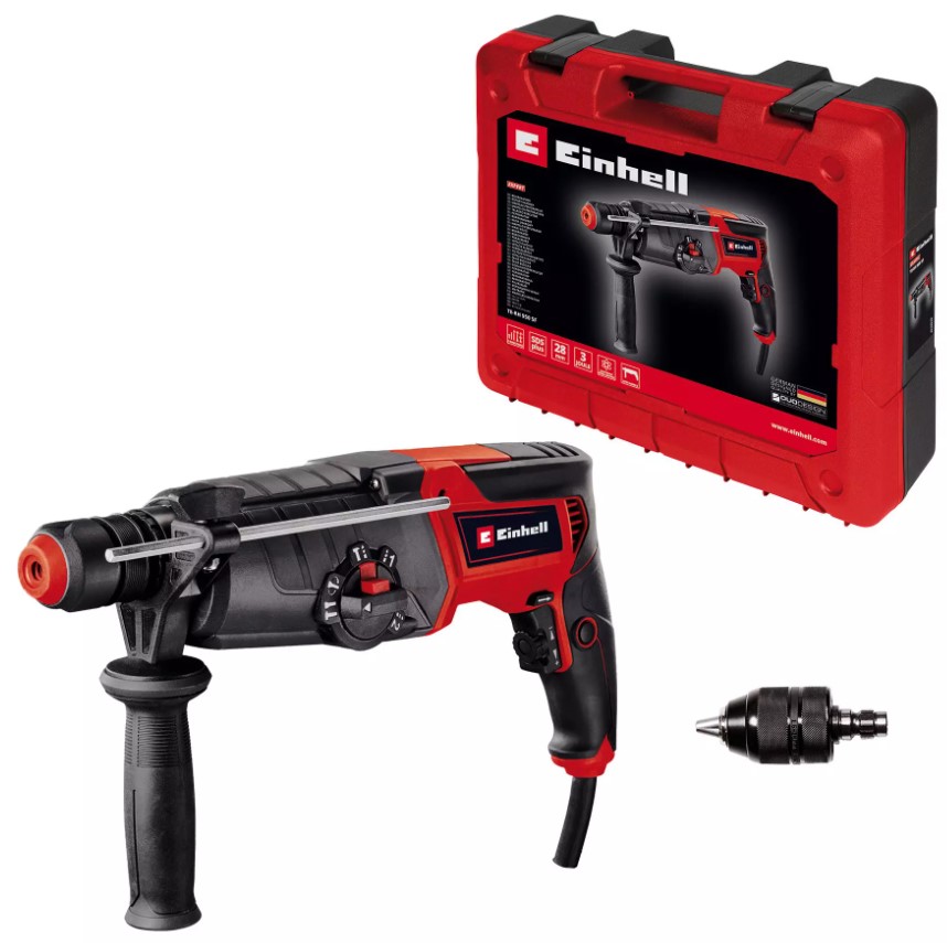 Potente herramienta eléctrica para uso doméstico y profesional ligero. Con una potencia de 950 W y un potente mecanismo neumático de impacto de 3 J, este martillo perforador está diseñado para trabajar con eficacia en materiales duros como hormigón, piedra y mampostería. Permite perforar hasta 28 mm en concreto, lo que lo hace ideal para fijaciones pesadas o trabajos exigentes.