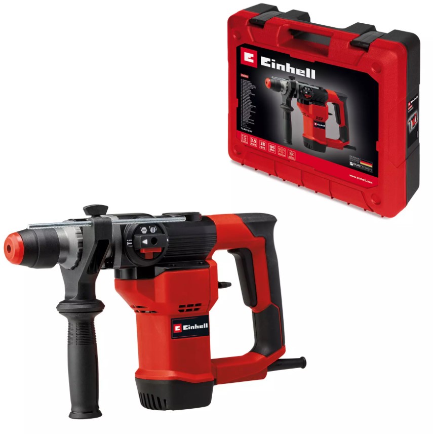 Potente martillo perforador de 950 W con tres funciones: perforar, taladrar con percusión y cincelar. Ofrece una fuerza de impacto de 3 J y portaherramientas SDS-Plus para un cambio rápido de accesorios. Incorpora empuñadura antivibración, tope de profundidad regulable y maletín de transporte. Ideal para trabajos exigentes en hormigón, piedra o mampostería.