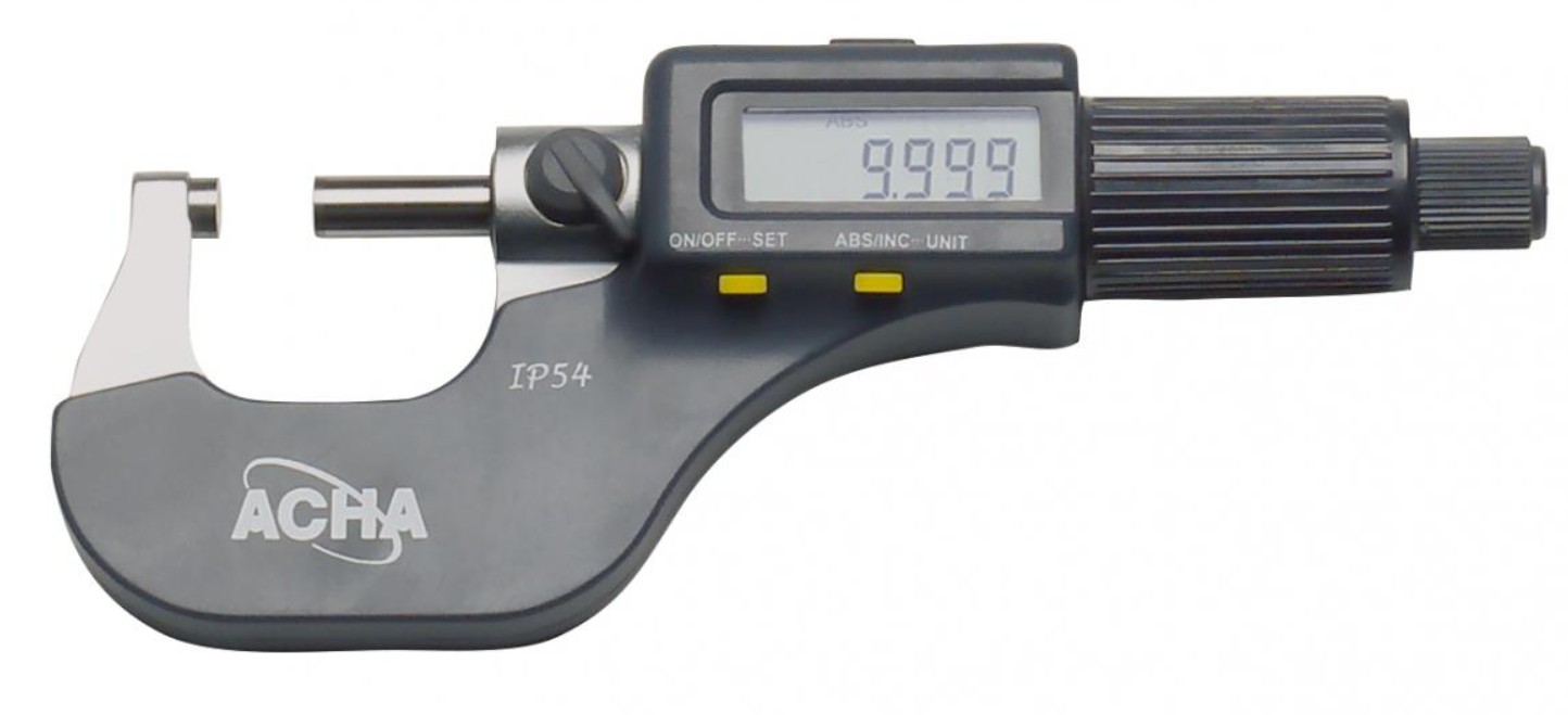 Micrómetro exterior digital modelo 08200 de ACHA con protección IP54, indicado para mediciones precisas.