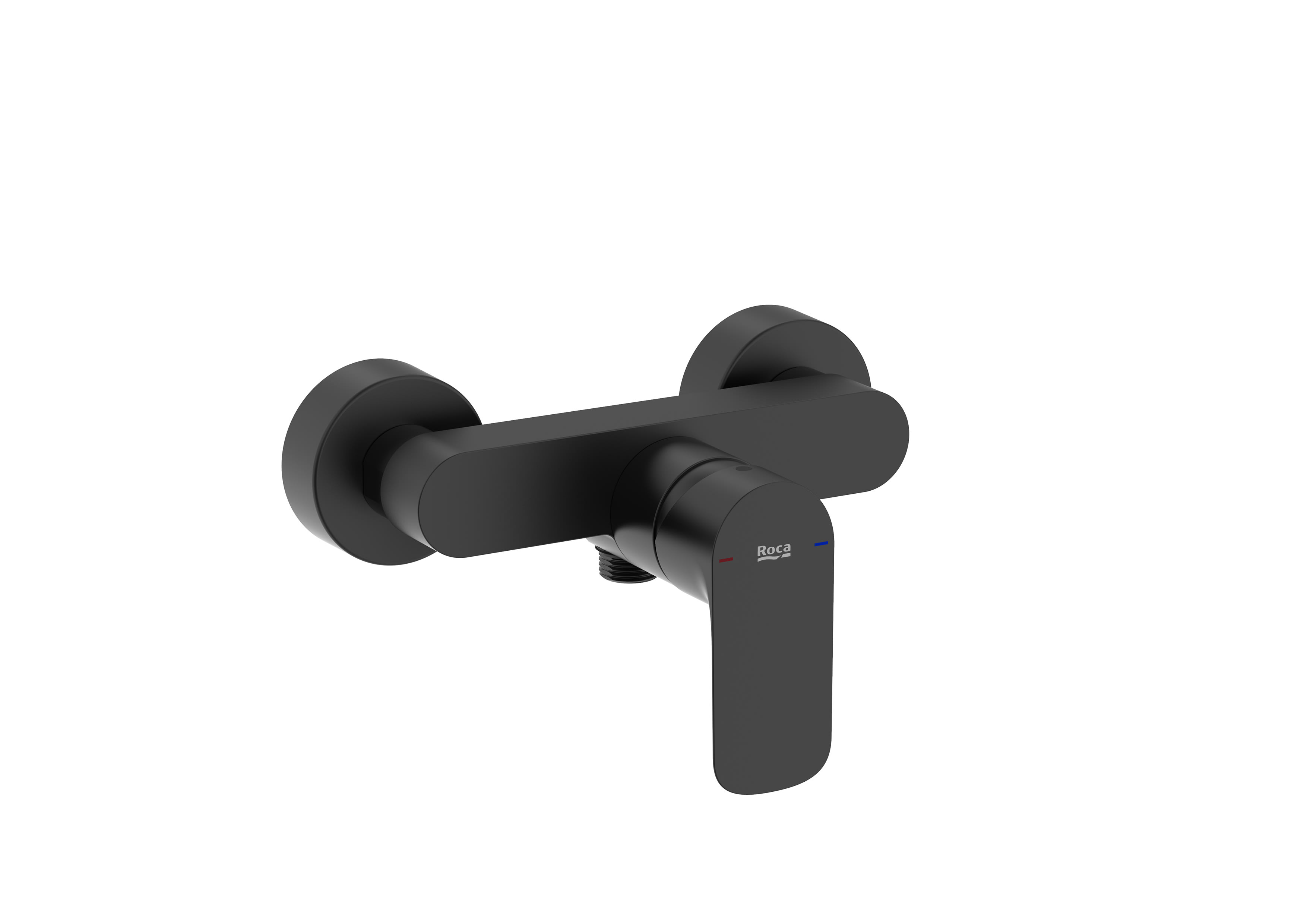 Grifo monomando de ducha de la colección Cala NM de Roca, con acabado negro mate (ref. A5A216ENB0), que combina estilo contemporáneo y funcionalidad moderna.