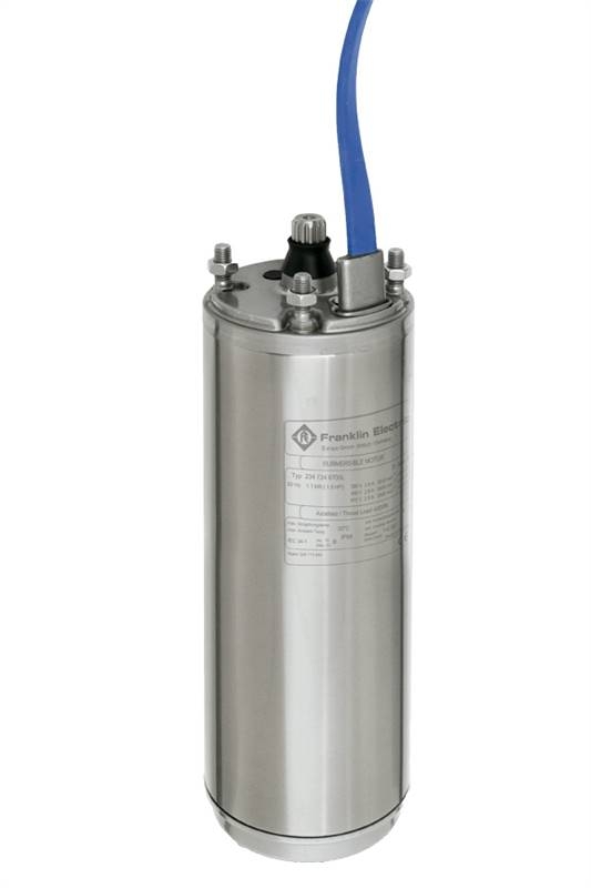 Motores encapsulados trifásicos Franklin Electric de 4, fabricados según la norma ISO 9001. Equipados con cojinetes radiales y axial lubricados por agua, para un funcionamiento exento de mantenimiento.